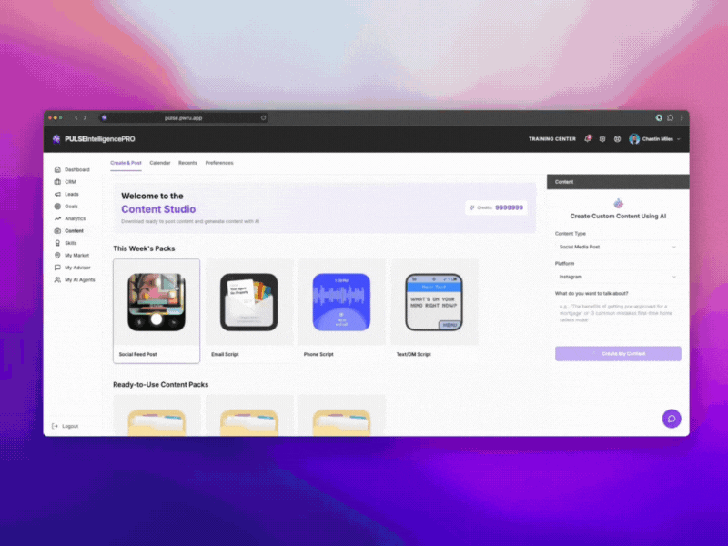 PULSEIntel PRO brings planning, execution, and growth together in one AI-powered ecosystem built for real estate agents.